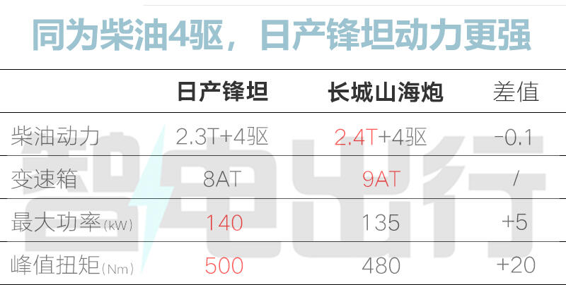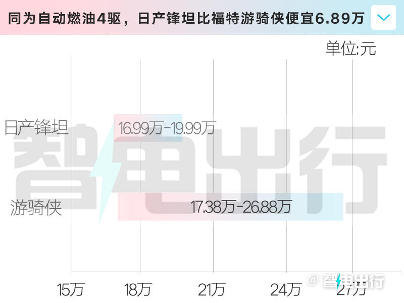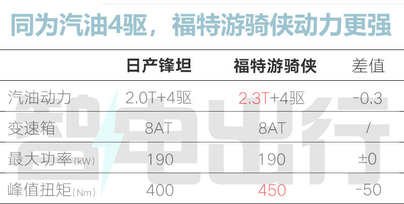 和長城山海炮Hi4-T比,鋒坦PHEV價格低3.89萬。山海炮雖配置豐富,但柴油版扭矩比鋒坦少20牛·米;面對福特游騎俠,鋒坦全系標配4驅,游騎俠入門是兩驅,后者4驅版價格更高,而且車身尺寸小不少。論綜合實力,鋒坦明顯更勝一籌。